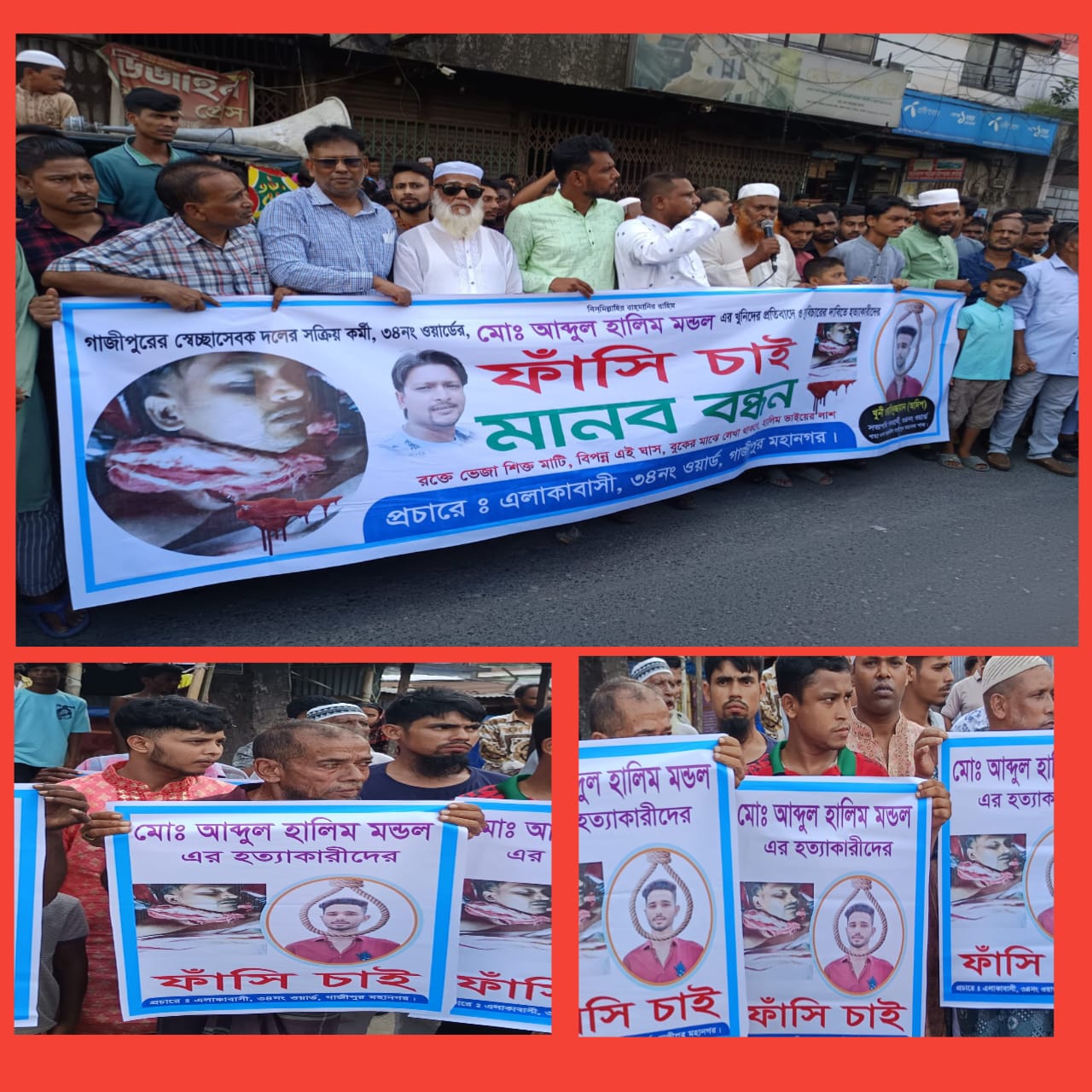 গাজীপুরে ৩৪ নং ওয়ার্ডের স্বেচ্ছাসেবক নেতা হালিম মন্ডলের হত্যার মানববন্ধন