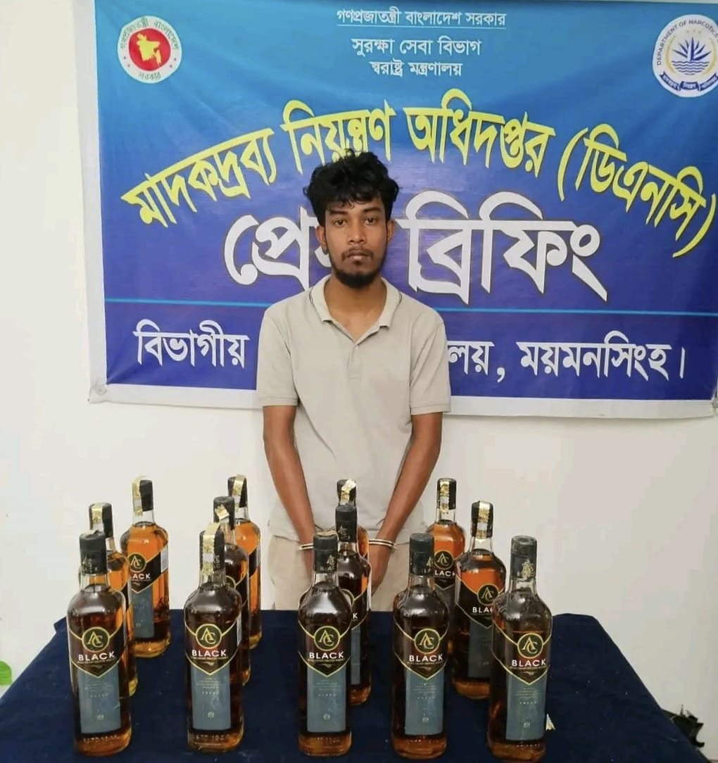ময়মনসিংহে ভারতীয় মদসহ গ্রেপ্তার ০১