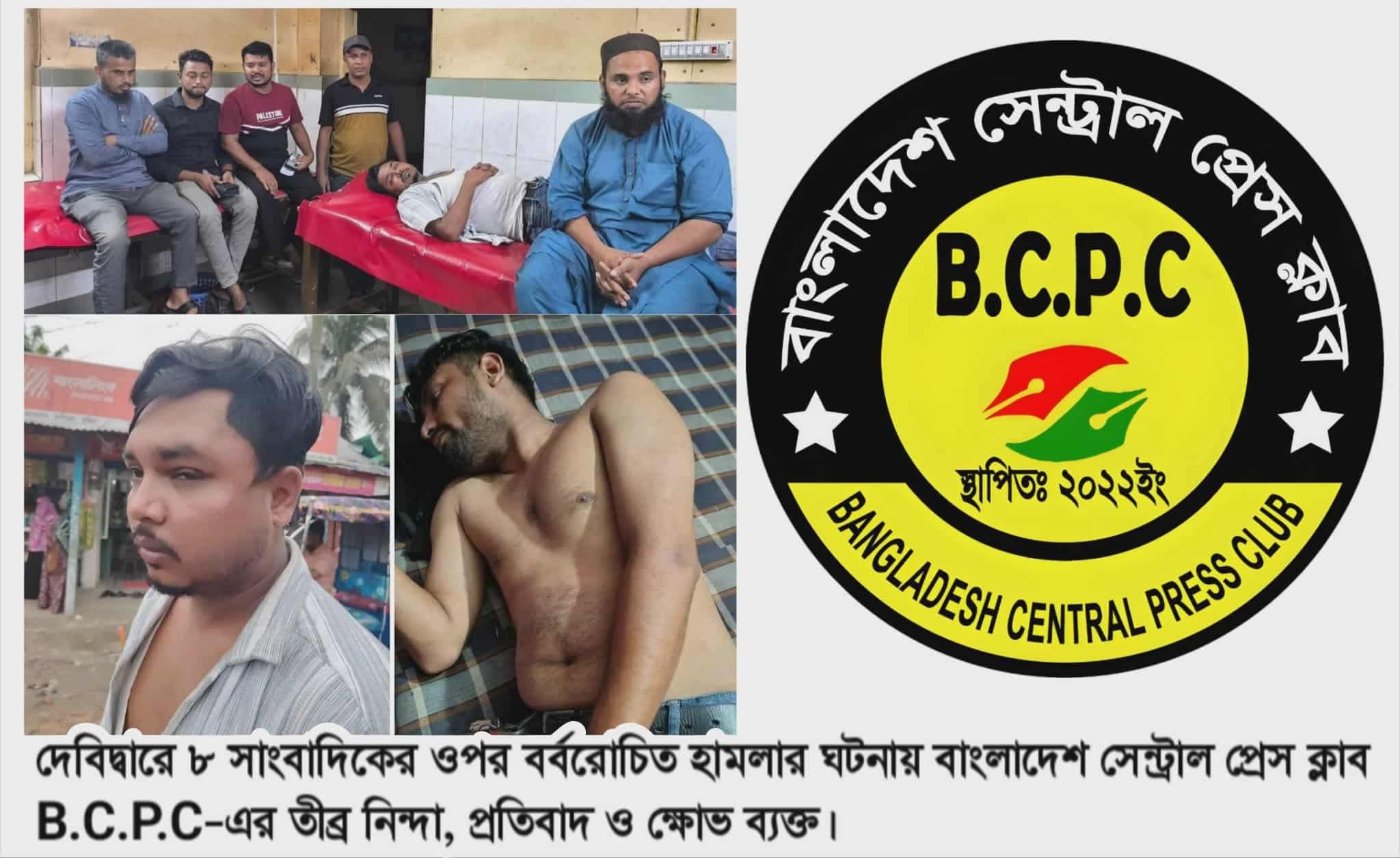 দেবিদ্বারে ৮ সাংবাদিকের ওপর বর্বরোচিত হামলার ঘটনায় বাংলাদেশ সেন্ট্রাল প্রেস ক্লাব (B.C.P.C)–এর তীব্র নিন্দা, প্রতিবাদ ও ক্ষোভ ব্যক্ত।