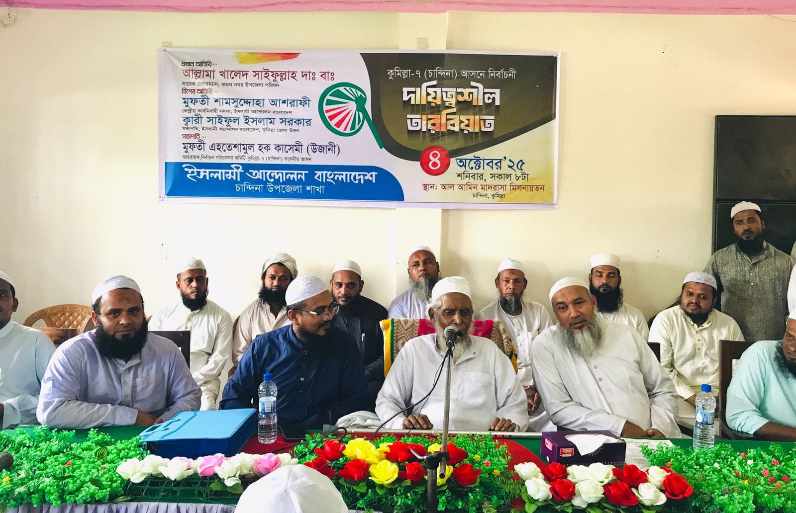 আজ ৪ অক্টোবর সকাল ৮ টায় চান্দিনা আল-আমিন মাদরাসা মিলনায়তনে নির্বাচনী দায়ীত্বশীল তারবিয়াত কুমিল্লা -৭ চান্দিনা আসনের সংসদ সদস্য পার্থী জননেতা এহতেশামুল হক কাসেমী’র সভাপতিত্বে অনুষ্ঠিত হয়,