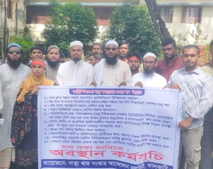 অবস্থান কর্মসূচি আয়োজনে: সাস্থ্য খাত সংস্কার আন্দোলন,নলছিটি, ঝালকাঠি।