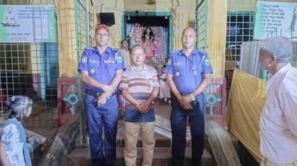 রাজশাহী,তানোরে শান্তিপূর্ণ পূজা নিশ্চিত করতে মণ্ডপে মণ্ডপে ওসি আফজাল হোসেন। রাজশাহী প্রতিনিধিঃ রাকিবুল ইসলাম মিঠুন। রাজশাহী,তানোর উপজেলার হিন্দু ধর্মাবলম্বীদের বৃহত্তম ধর্মীয় উৎসব শারদীয় দুর্গাপূজা ঘিরে রাজশাহীর তানোর উপজেলায় আইনশৃঙ্খলা পরিস্থিতি