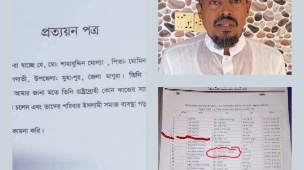 মাগুরাতে জুলাই হত্যা মামলার আসামিদেরকে প্রত্যায়ন দিয়ে জামায়াতের জেলা আমির এর বানিজ্য। নিজস্ব প্রতিনিধিঃ মাগুরা মহম্মদপুরে জুলাই আন্দোলনে নিহত আহাদ-সুমন হত্যা মামলার আসামি আওয়ামীলীগের পদধারী নেতা ও তার সহযোগীদের হত্যা